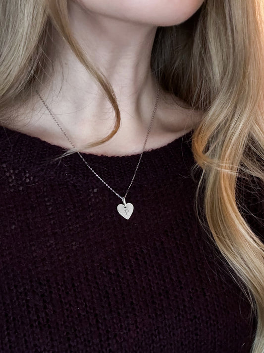 Personalizowany srebrny naszyjnik z literką | Zawieszka serce