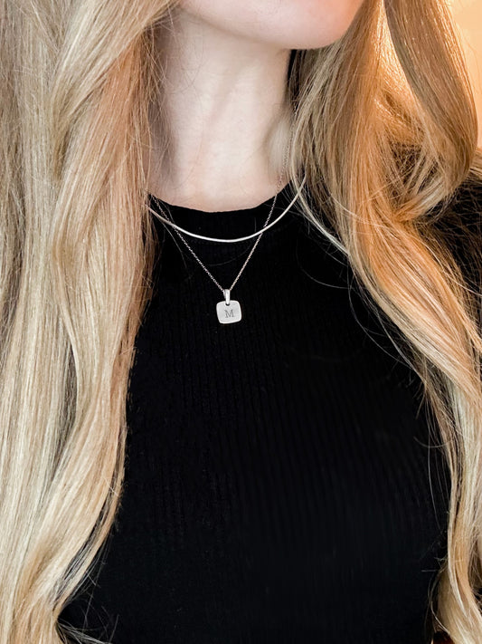 Personalizowany srebrny naszyjnik z literką | Kwadratowa zawieszka
